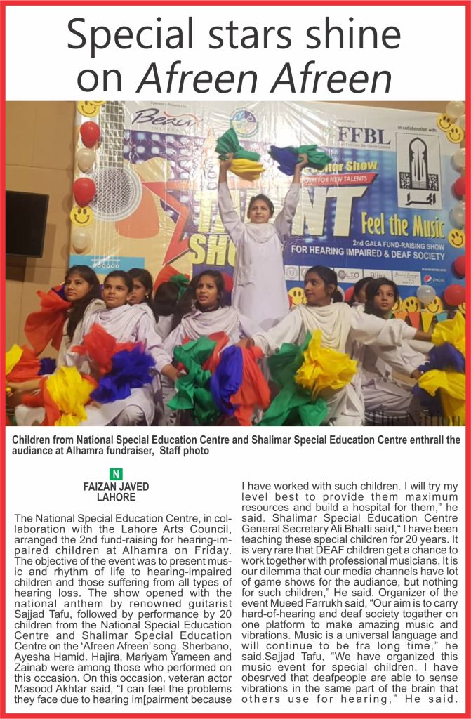 A Gala Fundraising Talent Show was held at Hall No. 3, Alhamra Lahore Arts Council, on 3rd November, to support hearing-impaired, Deaf, and differently-abled students. The event was organized in collaboration with National Special Education, Johar Town.